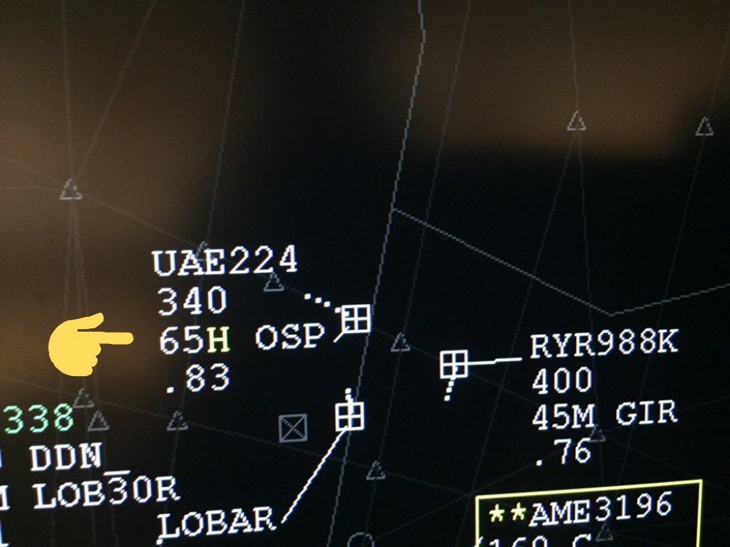 Como se ve en la fotografía y según explica la cuenta de Twitter de Controladores: “En la primera línea va el indicativo del vuelo. Normalmente 3 letras para definir la aerolínea y luego una combinación de números (y letras). En la segunda línea está el nivel de vuelo (340). En la tercera va la velocidad respecto al suelo o Ground Speed en decenas de nudos (65)”. Además, @controladores señala: “La H, es la categoría de estela turbulenta (Heavy). OSP hace referencia a OSPOK, punto frontera con el siguiente FIR (Marsella) . Y en la cuarta línea puedes ver su número de Mach (0.83)”