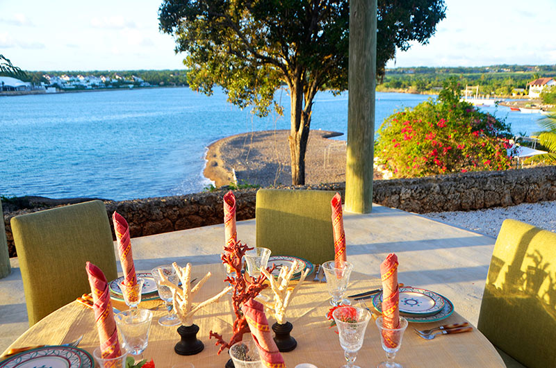 El restaurant ofrece grandes espacios al aire libre y una amplia terraza bajo un techo monumental, perfecta también para banquetes, desde la piscina, la cama colgante y diferentes otros rincones cómodamente equipados se puede gozar de atardeceres memorables del pequeño pueblo de pescadores y Marina Casa de Campo.