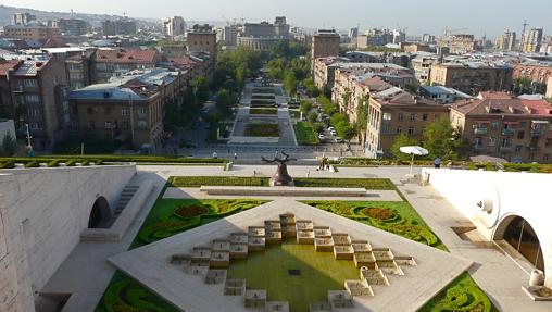 Ereván, la capital de Armenia, es un destino imprescindible para los amantes de la Historia, tanto por su pasado como por su arquitectura espectacular. Entre los lugares de interés destaca la catedral de San Gregorio el Iluminador, una de las más grandes de la Iglesia apostólica armenia. Después de visitar las ruinas del templo de Zvartnos, en la meseta de Ararat, puedes disfrutar de las vistas a las montañas de los alrededores. De turismo por la ciudad, no te pierdas la Cascada, una escalinata gigante hecha de piedra caliza con fuentes, esculturas y un jardín tranquilo, o la plaza principal de la ciudad, Republic Square, en cuyas fuentes se celebra un espectáculo musical.