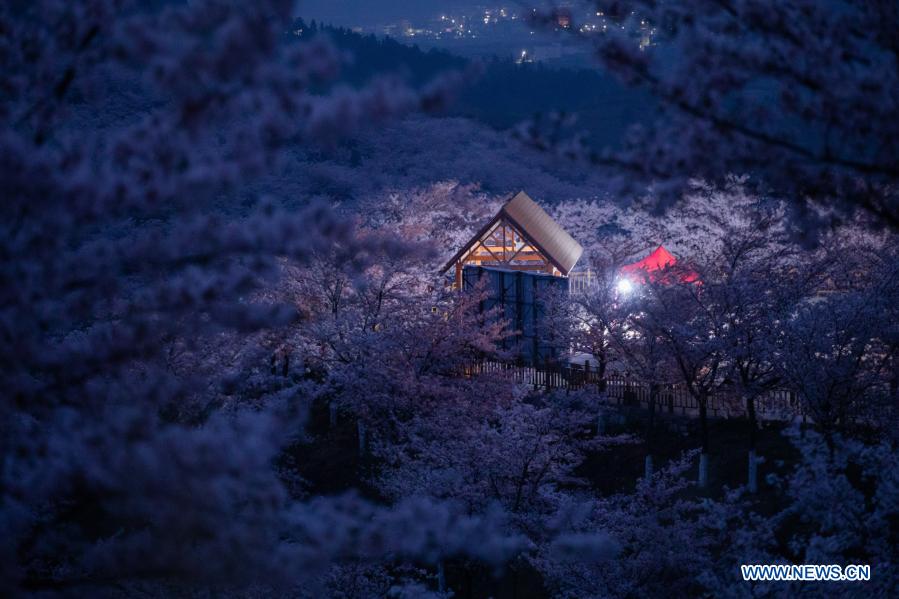 ANSHUN, 17 marzo, 2021 (Xinhua) — Imagen del 16 de marzo de 2021 de una casa de madera dentro del jardín de los cerezos en el municipio de Huangla, ciudad de Anshun, en la provincia de Guizhou, en el suroeste de China. El municipio de Huangla se ha aprovechado de la industria del turismo de las flores de cerezo para desarrollar la economía local y crear puestos de trabajo en las áreas cercanas. (Xinhua/Liu Xu)