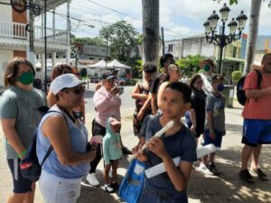 Cruceristas-se-sorprendieron-cuando-encontraron-a-estos-ninos-leyendo-poesia-por-un-tubo-a-la-gente-en-el-Parque-Central-de-Puerto-Plata.-1068x801