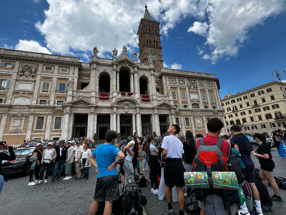 Miles de peregrinos y turistas han abarrotado esta mañana la entrada de la basílica de Santa María la Mayor para visitar por primera vez la tumba de papa Francisco, que desde ayer descansa en una sobria tumba sobre la que se posa una rosa blanca.
