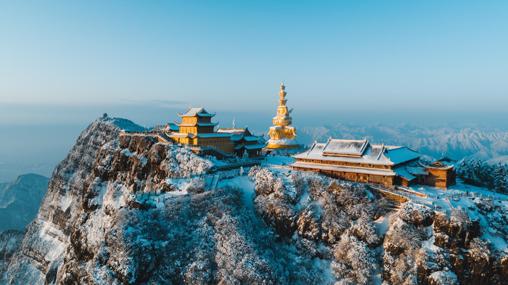 Por su parte, el templo de Jinding es otro de los recomendados. Se encuentra en la Cumbre Dorada, comúnmente conocida como el pico más alto de la montaña a la que se puede acceder fácilmente en teleférico. Enfrente, la prominente estatua dorada de 48 metros de altura del multidimensional Samantabhadra honra al protector de la montaña Pǔxián. Fue añadida en 2006, aunque ya muestra signos de deterioro. Sin duda es una bella panorámica de Emei que no debes perderte. El punto más alto de la montaña, a 3.099 metros, está cerca de Wanfo Ding (la cima de los Diez Mil Budas), pero desde hace algunos años está cerrada al público.