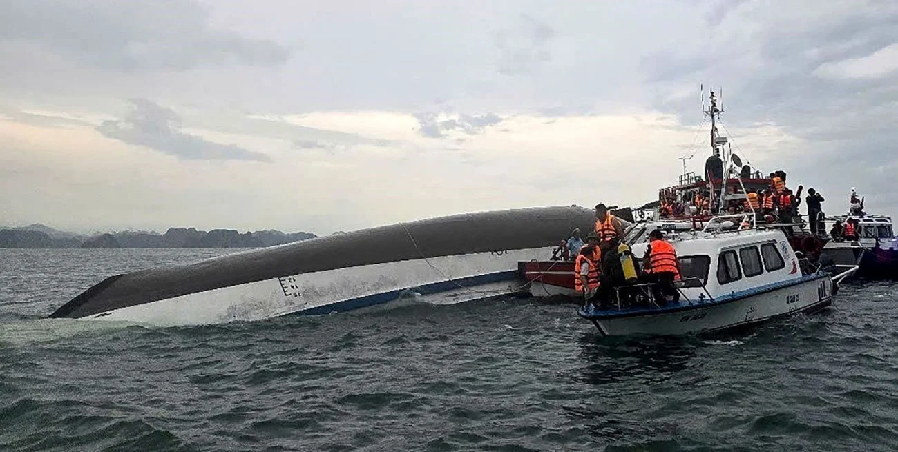 El accidente se produjo a primera hora de la tarde del sábado, cuando un barco en el que viajaban 48 turistas vietnamitas y cinco miembros de la tripulación se topó con una tormenta repentina y acabó zozobrando.
