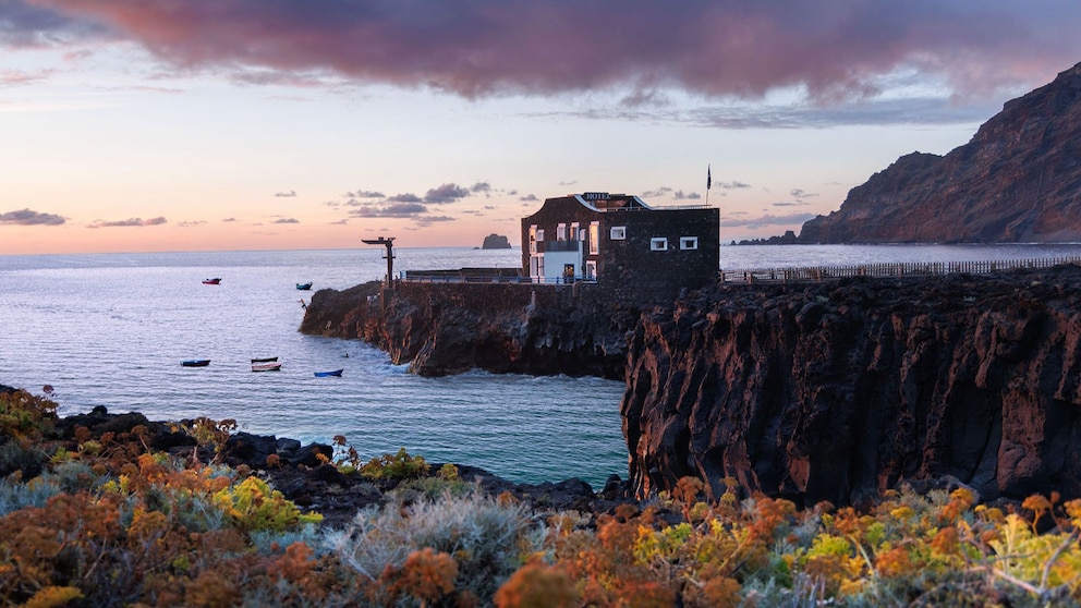 Con una construcción que asemeja el casco de un barco anclado y solo cinco habitaciones, este establecimiento resalta sobre una lengua de roca volcánica que se adentra en el Atlántico, en el pueblo pesquero de Las Puntas, dentro del municipio de Frontera.