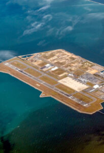 Aerial of domestic airport on the sea in Japan.